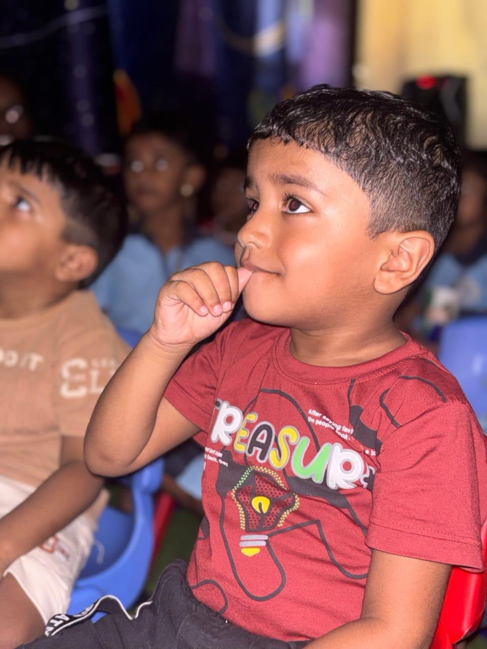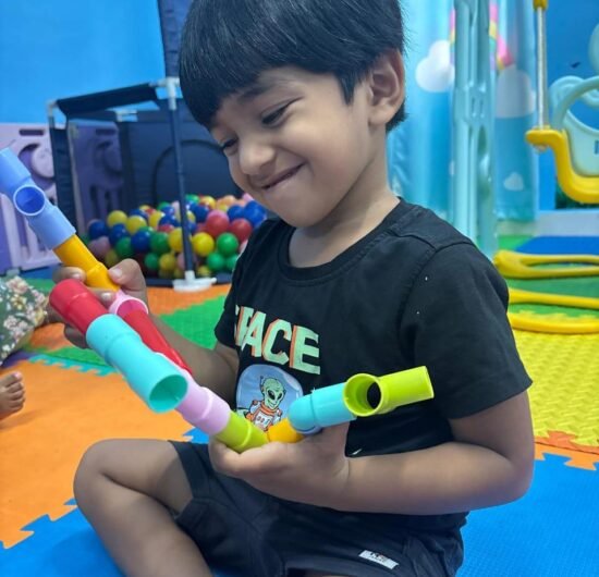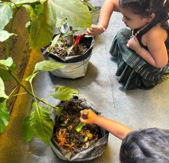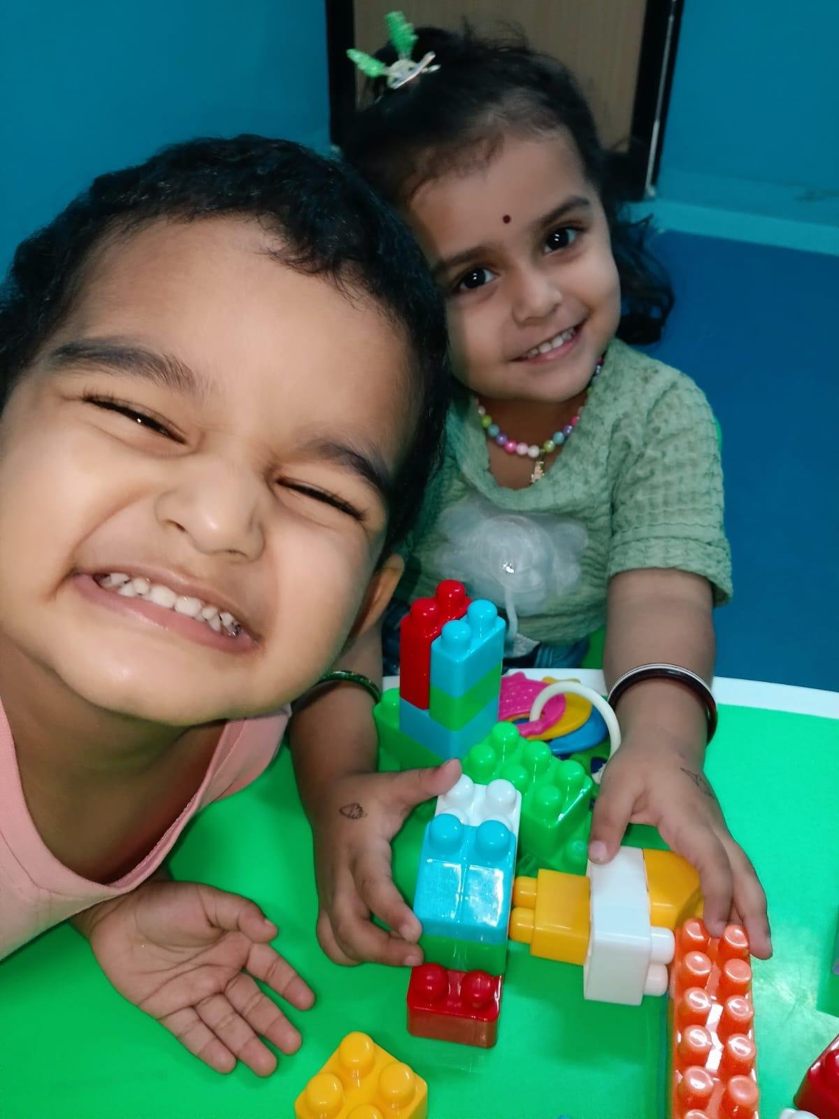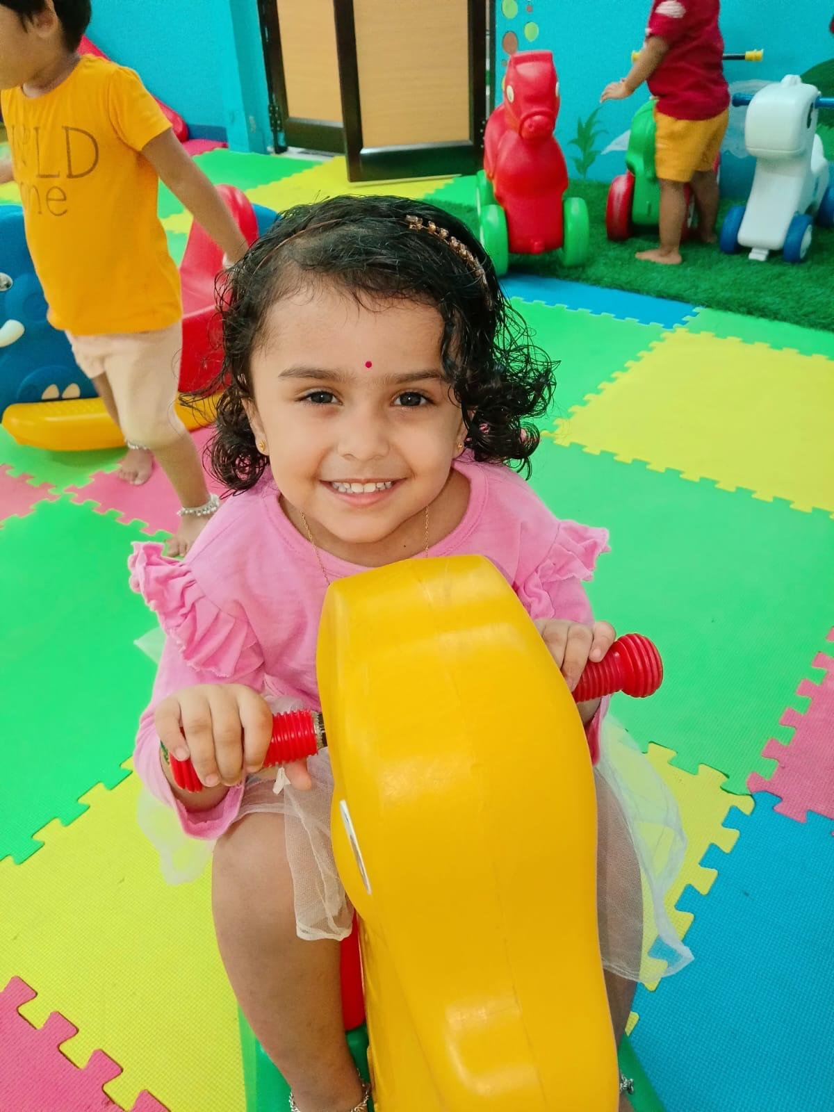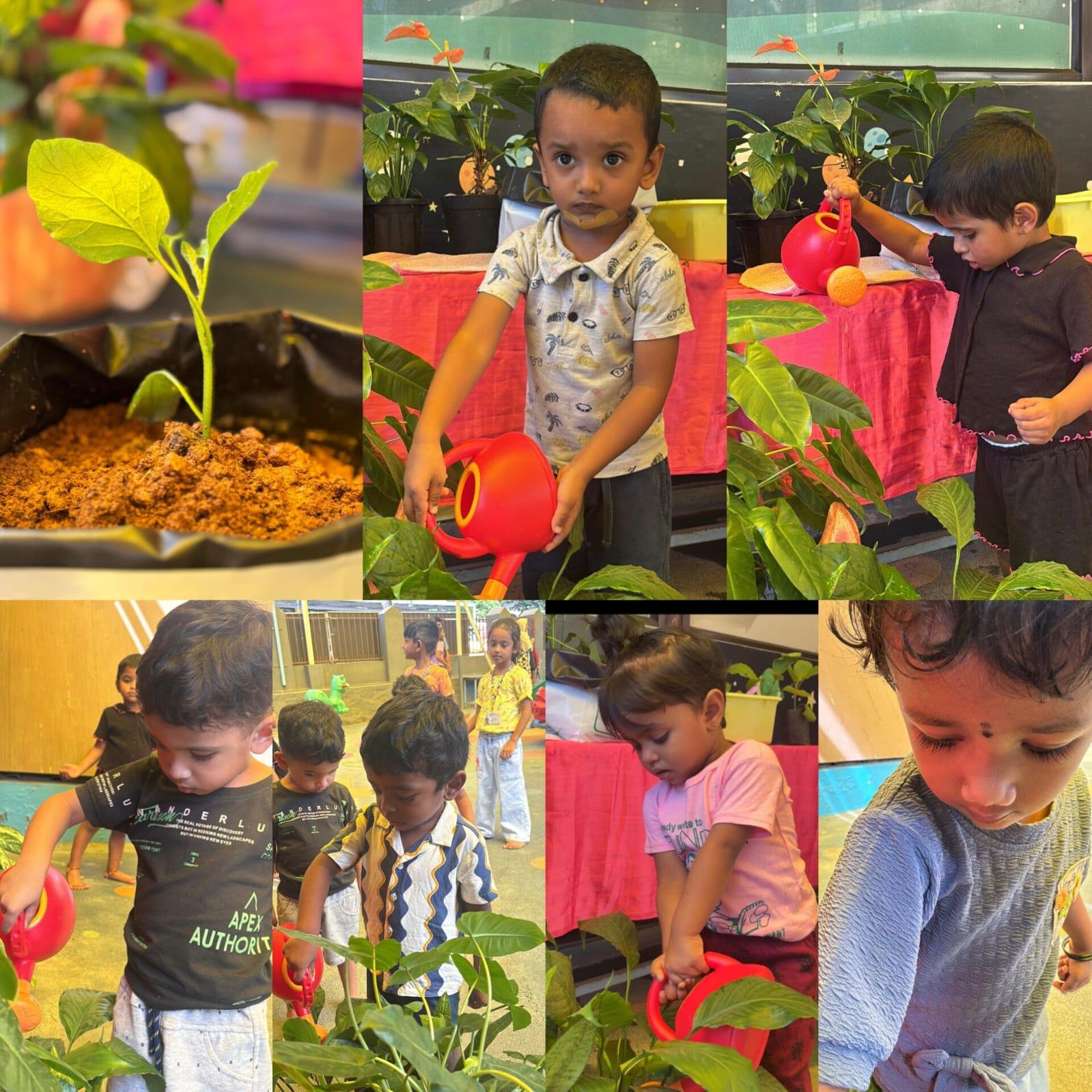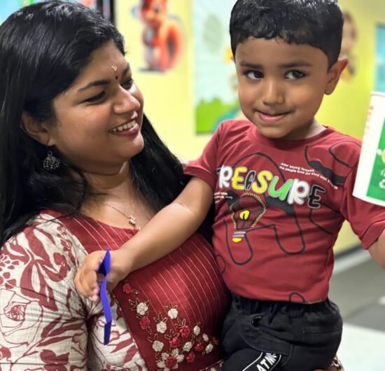 Children explore and learn through sensory-rich activities such as sand play, block play, gardening, and creative art, all of which help strengthen fine and gross motor skills. Early language development is supported through age-appropriate phonics, songs, and rhymes that build listening and communication skills. We also provide gentle guidance in personal care routines, including potty training, with patience and positive reinforcement.